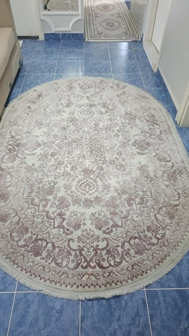 oval saçaklı halı boy. 2.30 en. 1.57