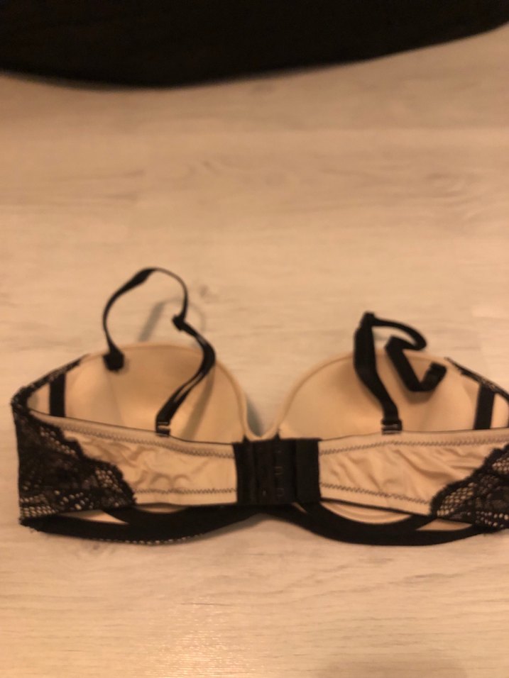 Bej renkte, siyah dantel detaylı ve ayarlanabilir askılı goth tarzı normal uzunlukta sütyen.