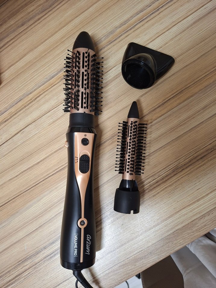 Bej ve siyah renklerde, iki çıkarılabilir fırça başlığı ve küçük bir kurutma aparatı bulunan saç şekillendirici. Saç hacmi ve şekillendirme için kolay kullanım sağlar. ♀️
