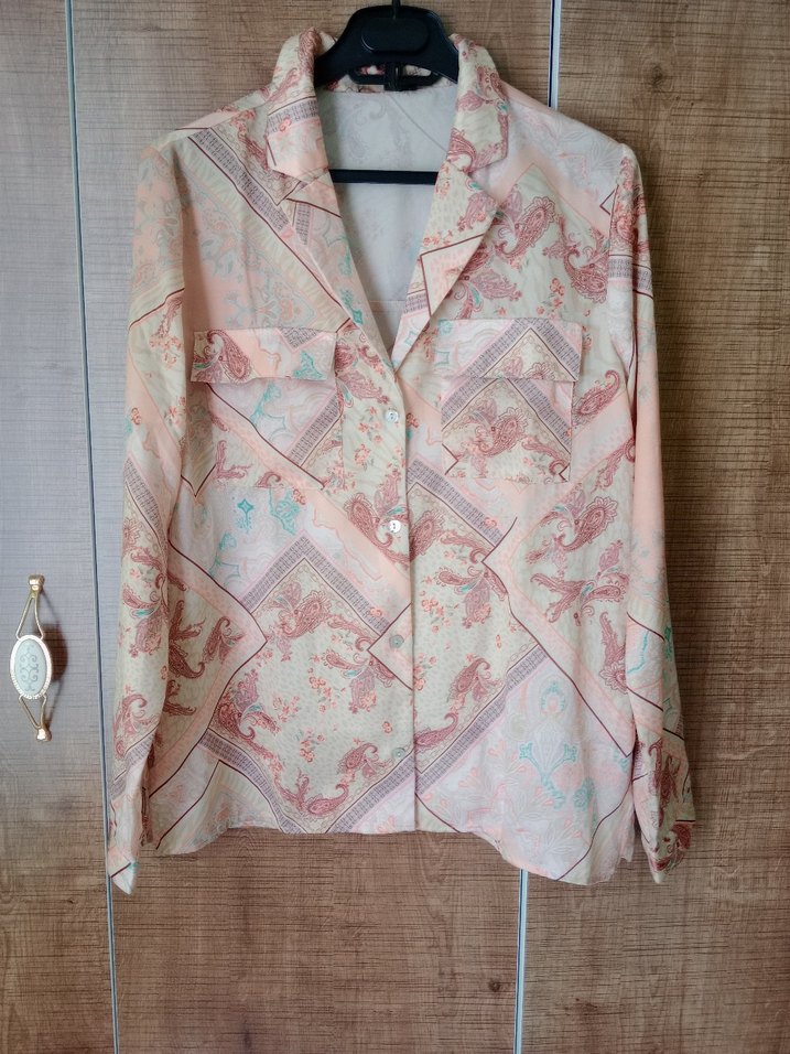 Bej renkte, düğmeli ön ve kesik yaka detaylı uzun kollu gömlek. Vintage tarzda, bağlama desenli ve rahat kesimli. Günlük kullanıma uygun yumuşak sentetik kumaş.