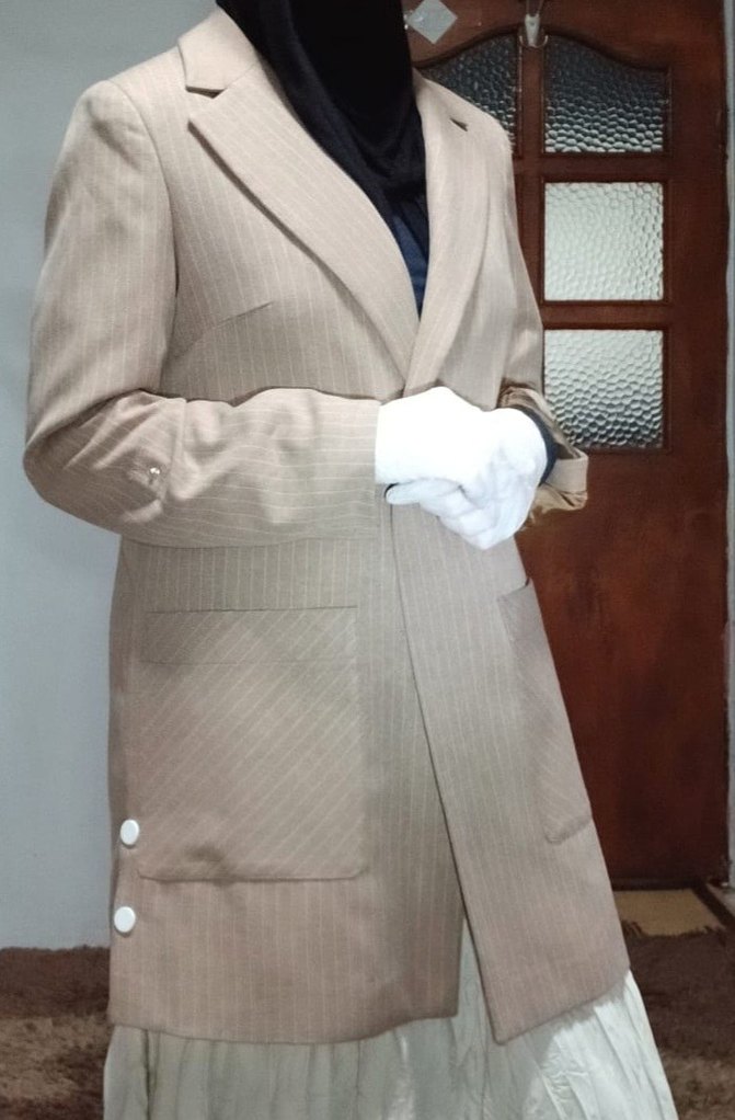 Bej renkli, düğmeli kadın midi retro ceketi, uzun kollu ve düz kesimdir. kumaş çok kalıteli defo yok zühre marka