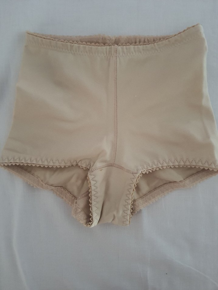 Bej renkli, vintage tarzda, kısa mini uzunlukta ve desensiz kadın külot korse. Konvansiyonel kesimi rahatlık ve sade şıklık sunar.
