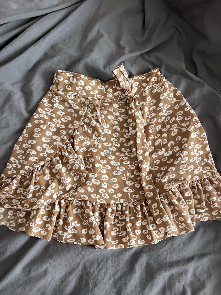 Bej renkte, volanlı etek. Bohem ve vintage tarzına uygun, günlük kullanım için ideal. Likralı.