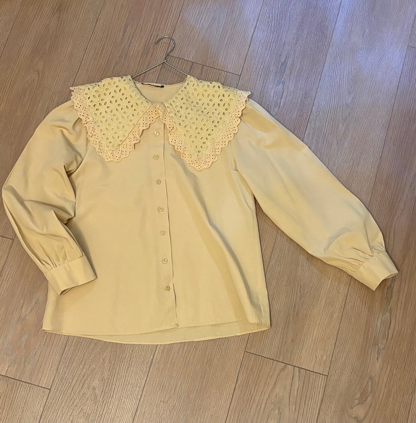 Bej kadın yakası nakışlı gömlek yalnızca 1 kez giyildi.