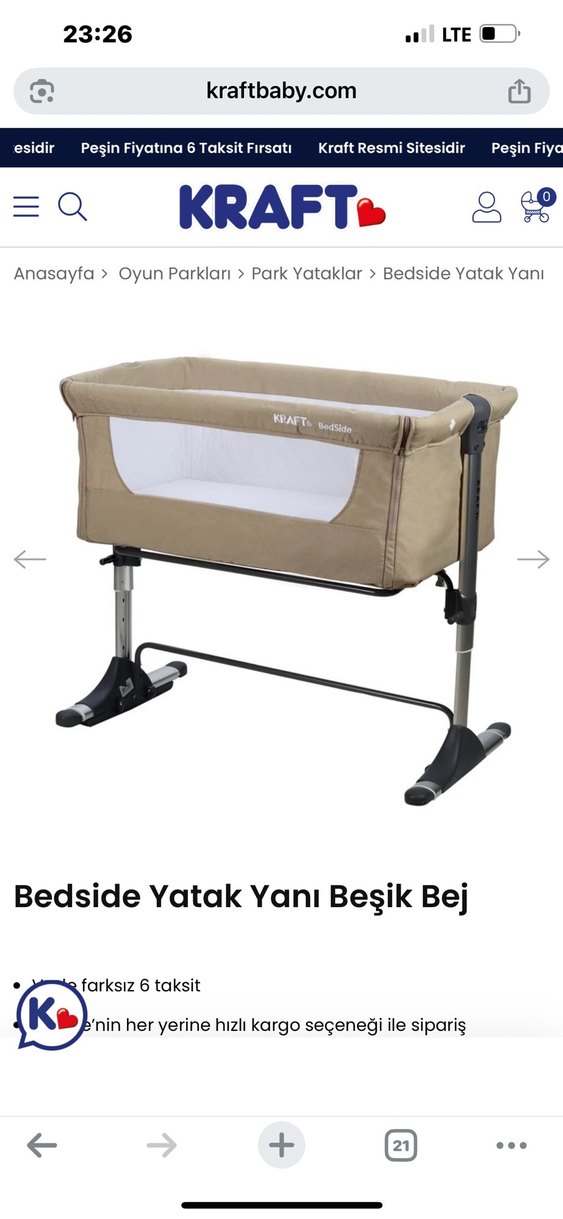 Bej renkte, gri detaylı, yatağa kolayca bağlanabilen yan beşik. Bebekler için güvenli ve rahat bir alan sağlar. ️