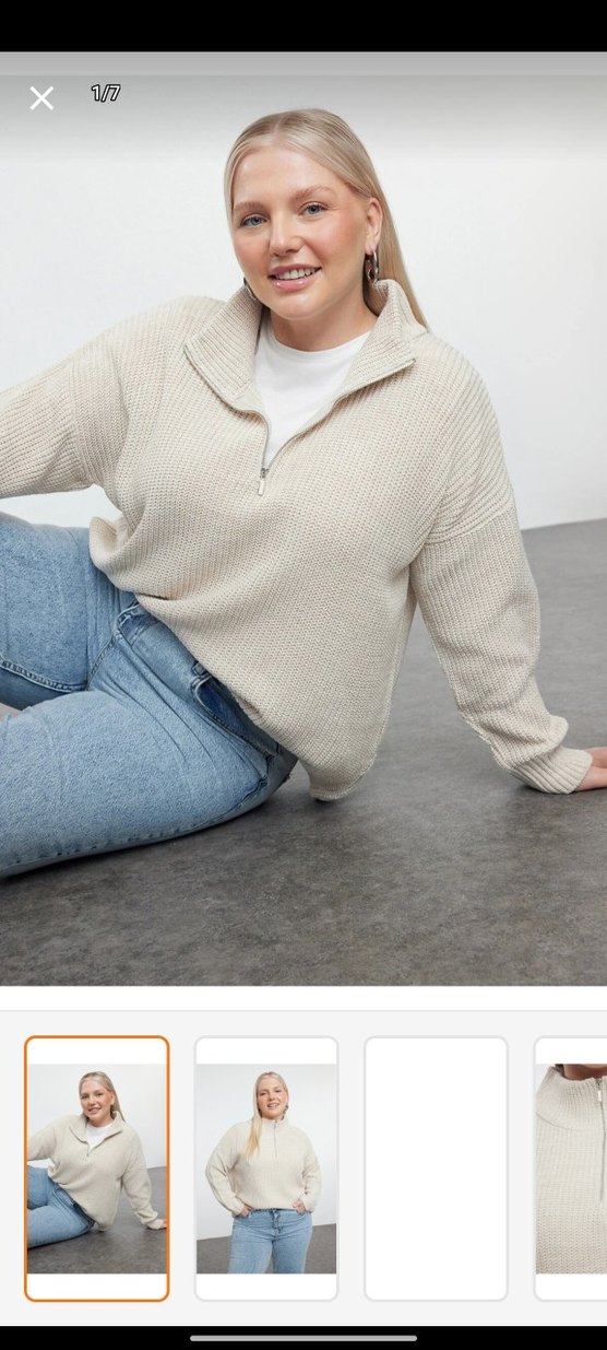 Bej renkli, yarım fermuarlı yüksek yakalı, uzun kollu örgü kadın kazak. Rahat ve salaş kesimiyle günlük kullanıma uygundur.