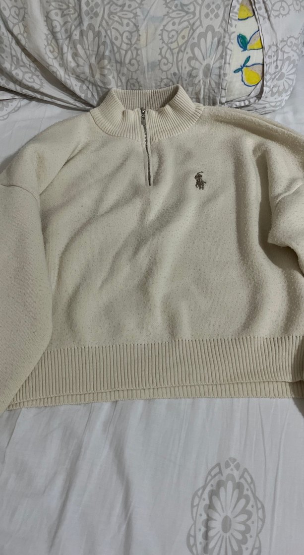 Yarım fermuarlı yüksek yakalı, rahat kesim bej kadın sweatshirt. Yumuşak ve sıcak kumaştan, uzun kollu ve örgü detaylıdır. Günlük rahatlık ve sokak stili için ideal.