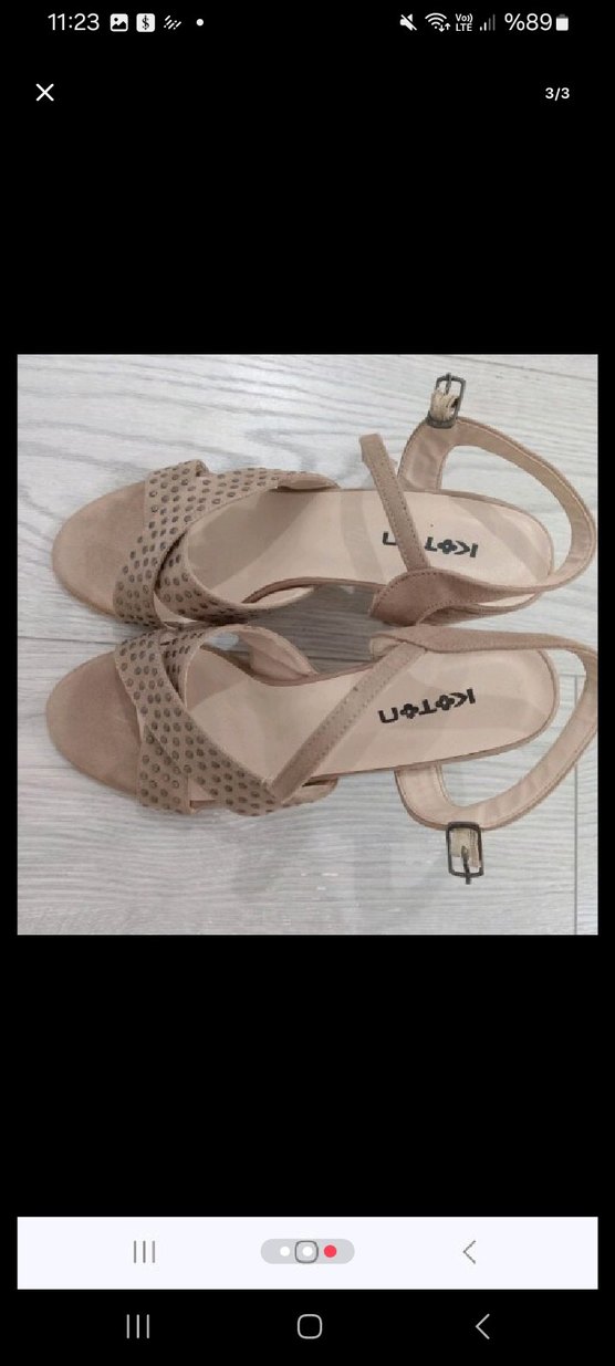 Bej yılan desenli, bağcıklı bantlara sahip, yumuşak malzemeden yapılmış dolgu topuklu kadın ayakkabısı, şık ve rahat. Koton