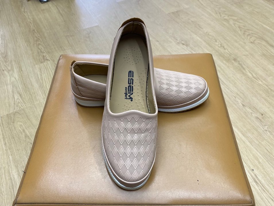 Bej yılan desenli, dolgu topuklu kadın babet. Elastik detaylarla rahat kullanım sağlar, günlük rahat stil için uygundur. Marka: ESEM.