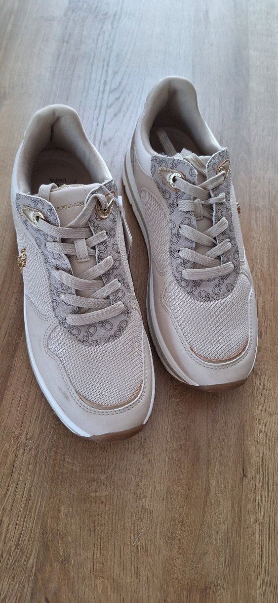 Bej renkli, yılan deseni detaylı, dolgu topuklu kadın spor ayakkabısı. Bağcıklı ve kauçuk tabanlı, günlük sokak stili için uygundur.