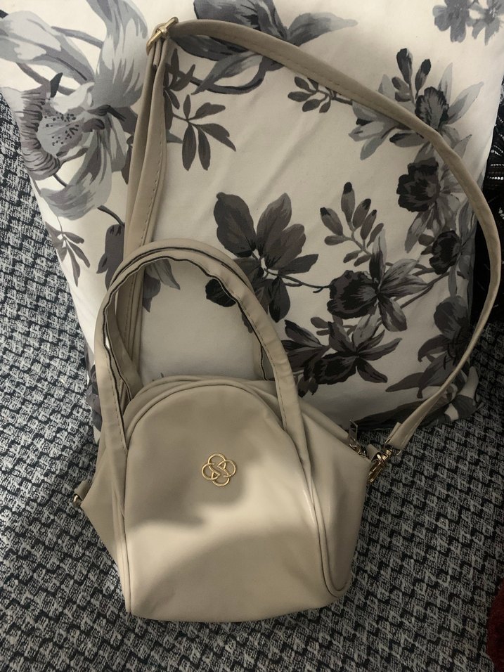 Bej renkli, yılan desenli sentetik kumaştan yapılmış fermuarlı kadın çanta. Üst sap ve ayarlanabilir omuz askısı ile sokak stiline uygun.