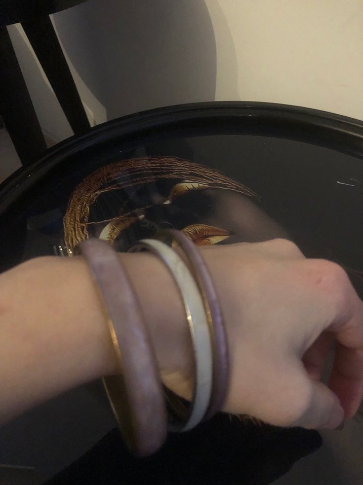 Mor renkli, desenli ve tokalı kadın bileklik, bohem ve retro Paris tarzını yansıtıyor.