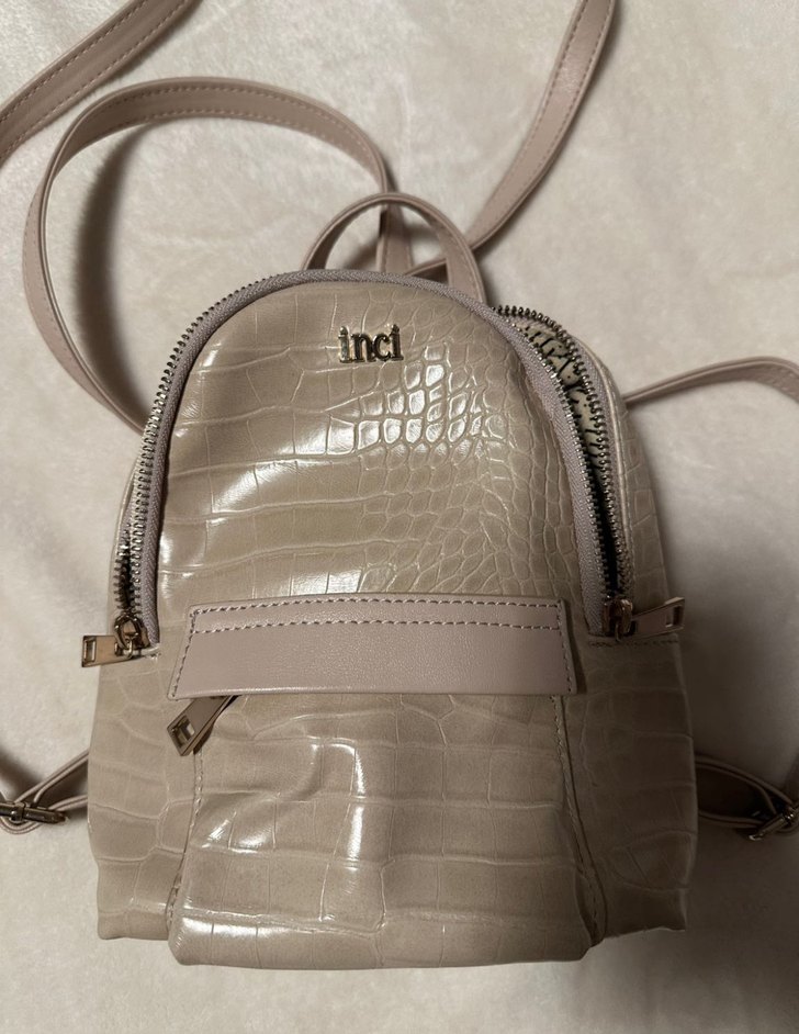 Hiç kullanılmadı yenidir.Bej yılan desenli deri sırt çantası, fermuarlı bölmelerle trendy casual sokak stiline uygun minimalist tasarıma sahiptir.