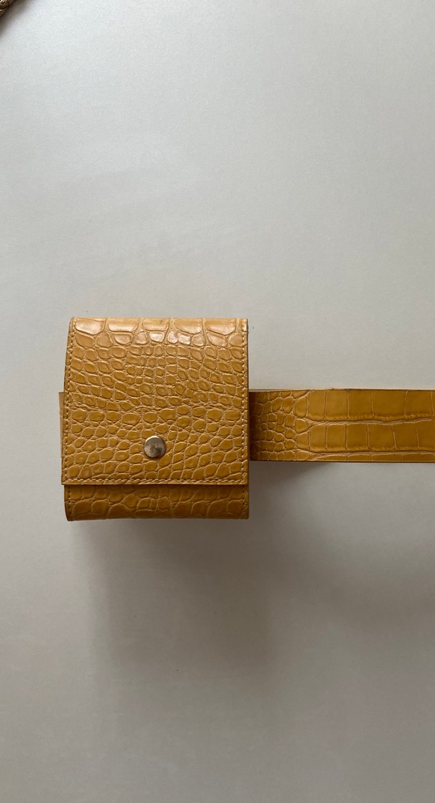 Bej renkli, yılan deseni ve kemerli tasarıma sahip çocuk cüzdanı. Açık tonları ve dokulu yüzeyiyle dikkat çeker. Büyükte kullanabilir çocuk da 83 cm uzunluğunda Hardal renk gibidir