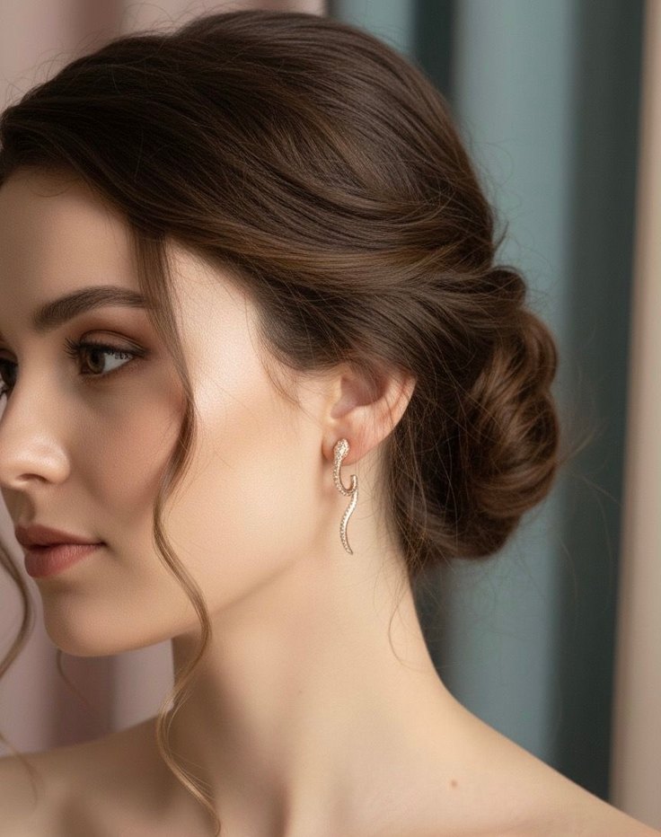 Bej yılan desenli, midi uzunlukta, çağdaş tasarımlı küpeler, düğün ve özel anlar için zahmetsiz şıklık sunar.