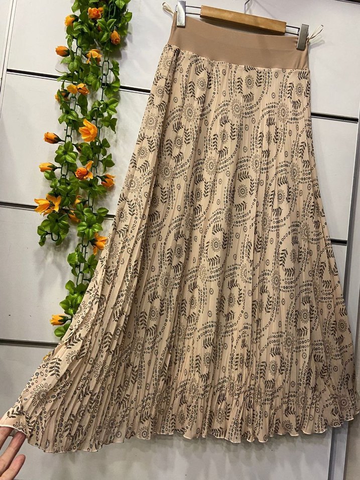 Bej renkte, yılan desenli ve piliseli uzun etek. Yumuşak sentetik kumaştan yapılmış, günlük kullanım için uygun, rahat kesim.marka temsilidir.#kiloşetek#kloş#moda#tarz##takı#kolye#bileklik#çeliktakı#çelik#buliz#kadıngiyim#bayangiyim#etek#rahatgiyim#güzel#fantazi