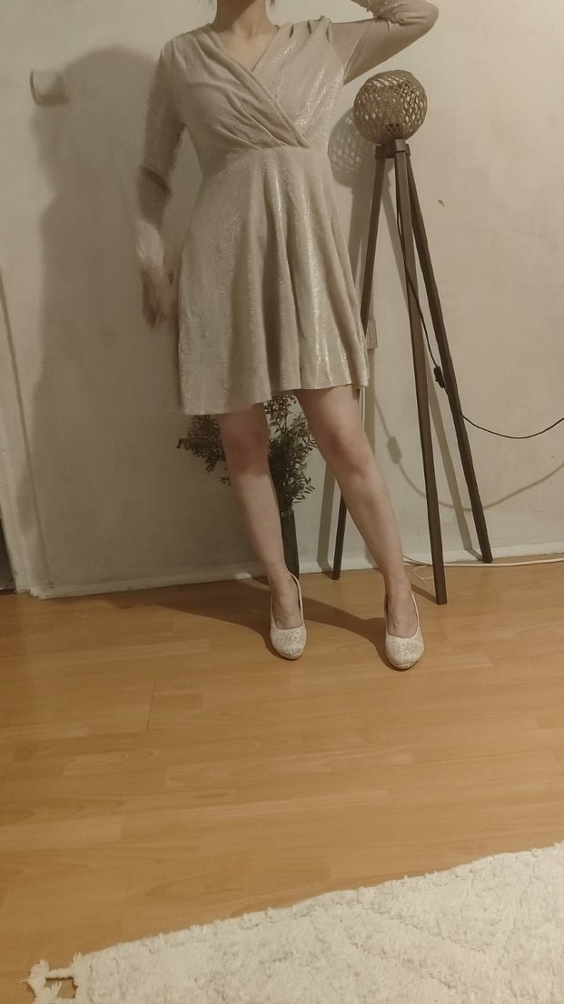 Bej renkte, yılan desenli ve pliseli keten kumaştan yapılmış stiletto topuklu ayakkabı. Günlük kullanım için uygundur.