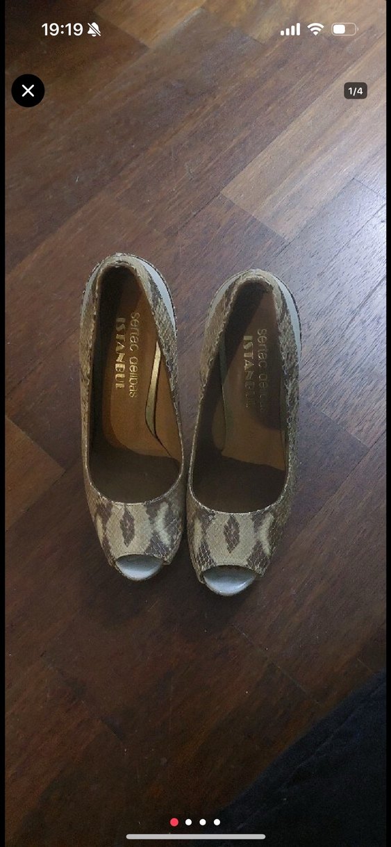 Hiç kullanılmadı Bej renkli, yılan desenli, sertaç delibaş el yapımı tasarım ayakkabı