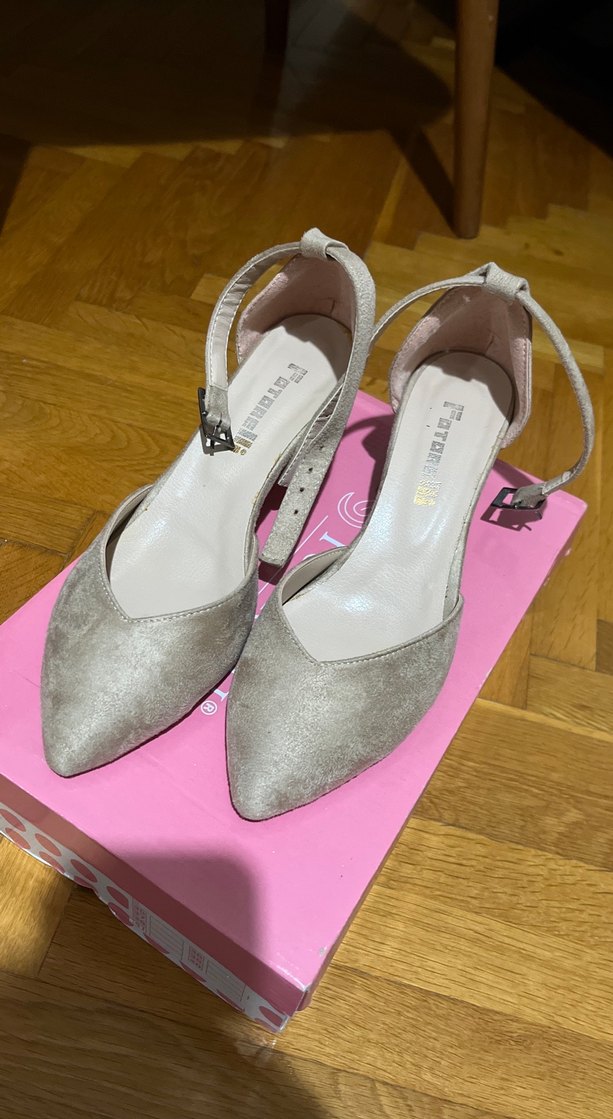 Bej yılan desenli süet malzemeden yapılmış, tokalı bilek askılı topuklu ayakkabılar, düğünler ve çağdaş tarz için uygundur. 2 kere giydim, kusurlarını fotoğraflarda görebilirsiniz