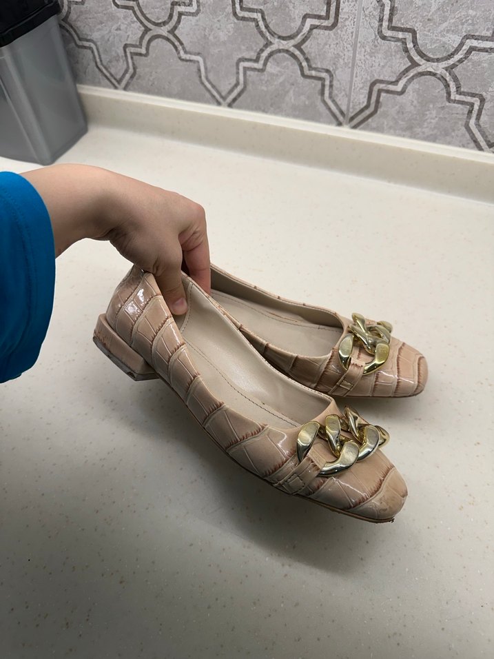 Bej Yılan Desenli Tokalı Kadın Babet