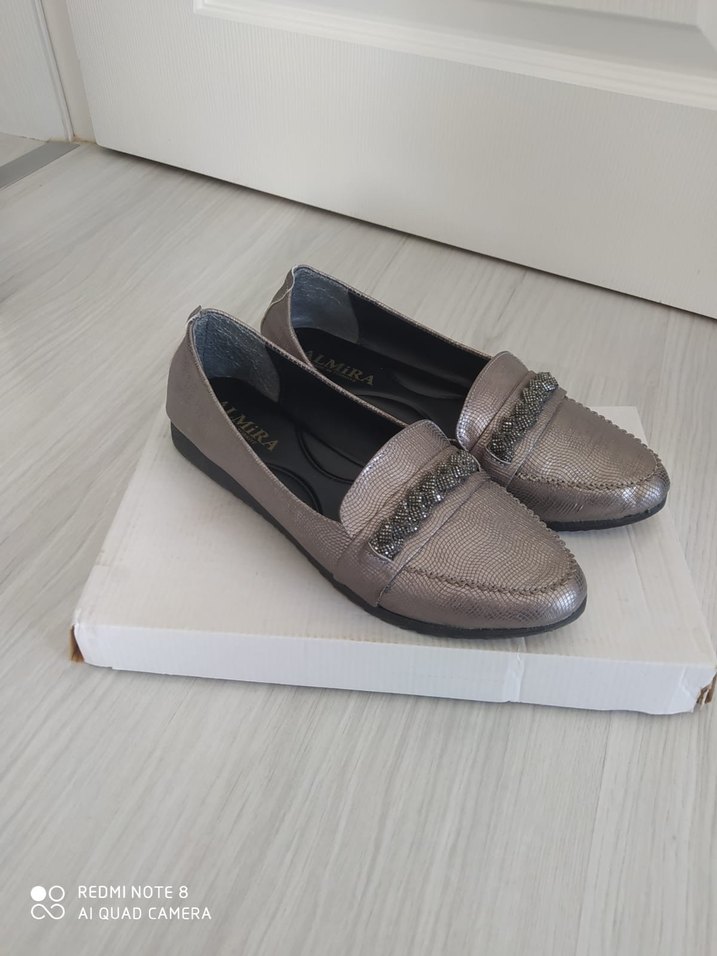 Bej Yılan Desenli Tokalı Kadın Babet