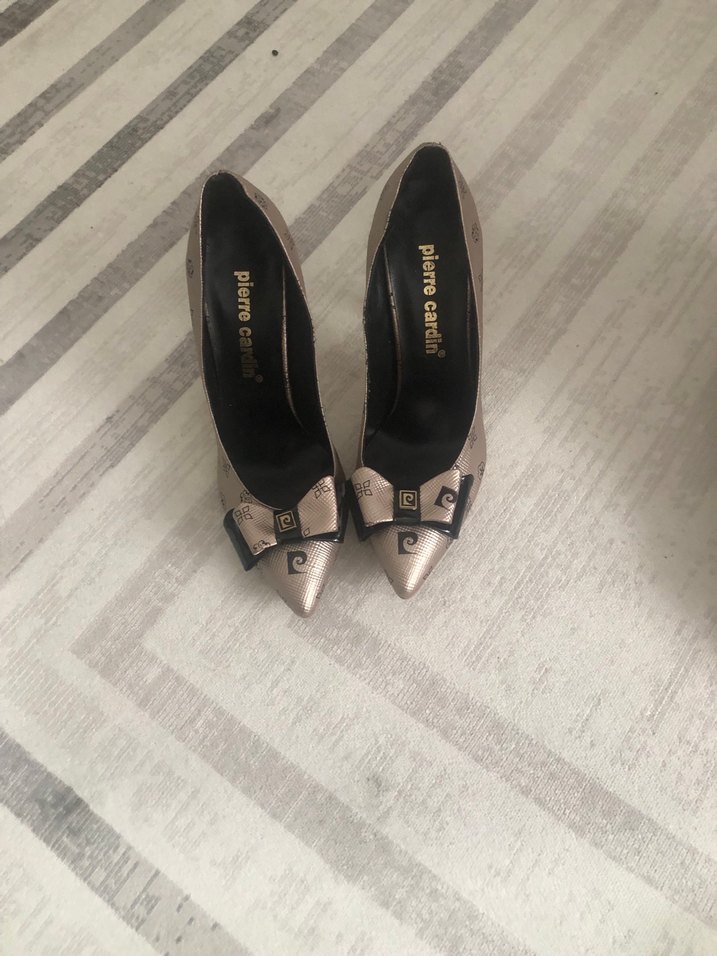 Bej yılan desenli, tokalı, sivri burunlu stiletto. Modern klasik tarzda, düğünler için uygun.