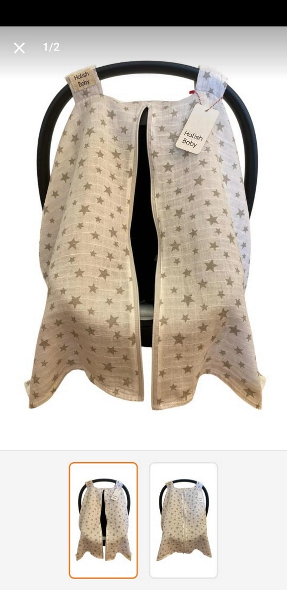 Bej renkli, yıldız desenli bebek oto koltuğu örtüsü, rahatlık ve koruma sağlar. Koltuğa kolayca takılır ve nefes alabilir yapıda tasarlanmıştır. bir kaç kez kullanıldı önden fermuarlı yanında takım örtüsü ile birlikte