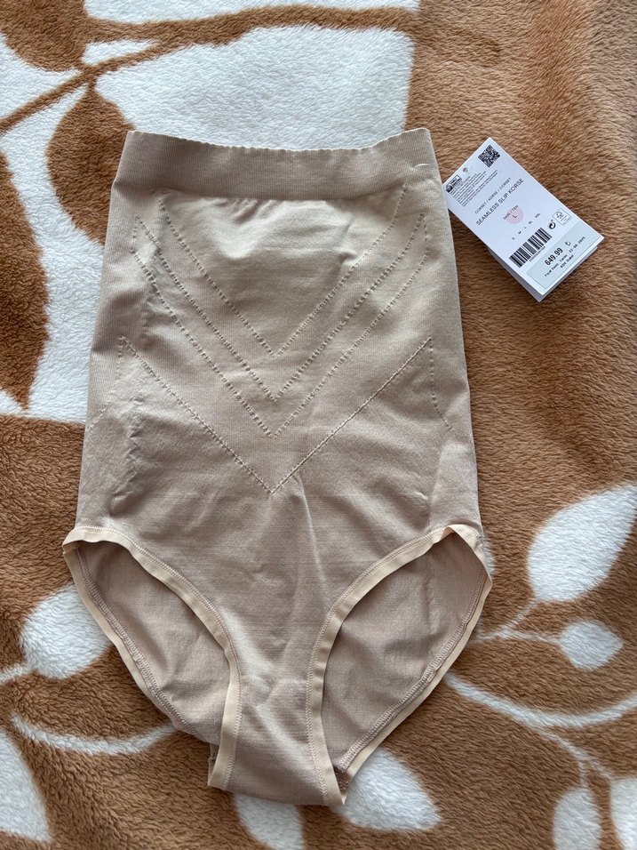 Bej renkte, yüksek bel midi uzunluğunda, desensiz ve minimalist normcore tarzda kadın iç çamaşırı ve korse. Hafif ve rahat kumaş kullanılmıştır. Pentiden daha yeni aldım hiç kullanmadım çünkü bacağımdan bile geçmedi.