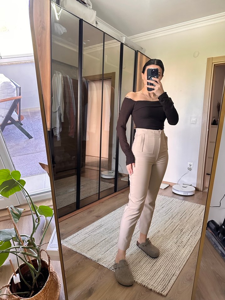 Bej yüksek bel ZR model Günlük Kadın Sigara