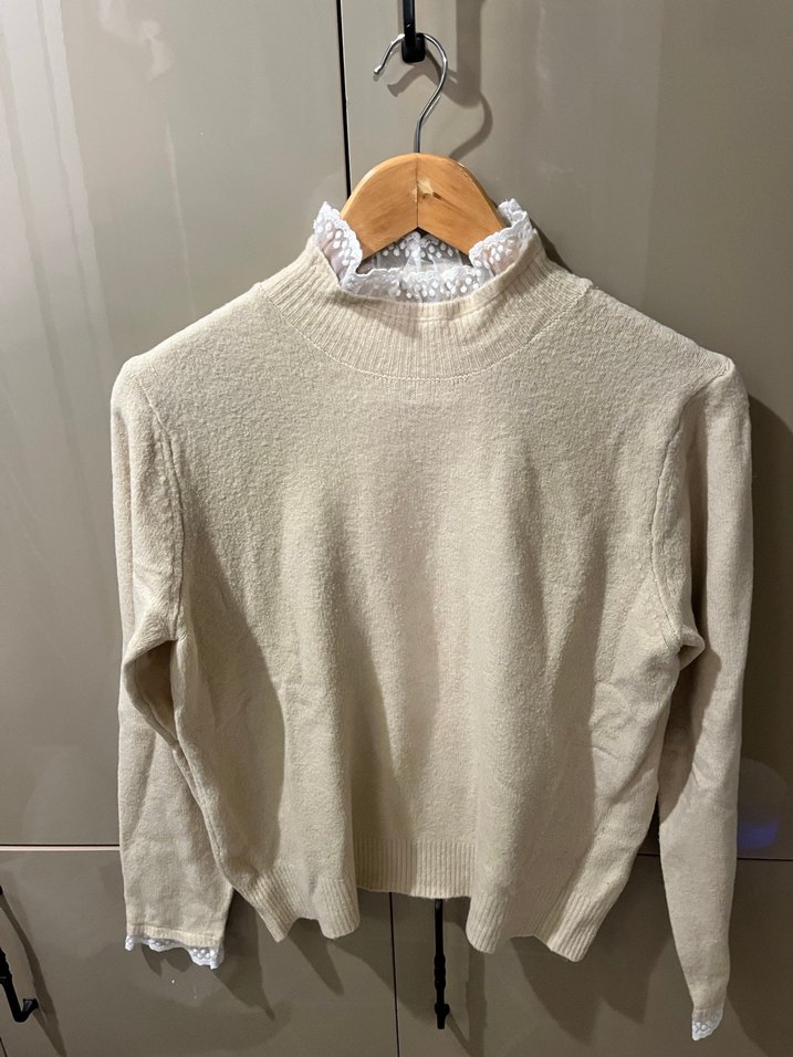 Bej renkli, yüksek yakalı ve uzun kollu örgü kadın kazak. Rahat kesimi ve midi boy uzunluğu ile günlük kullanıma uygun, desensiz ve konforlu bir model.