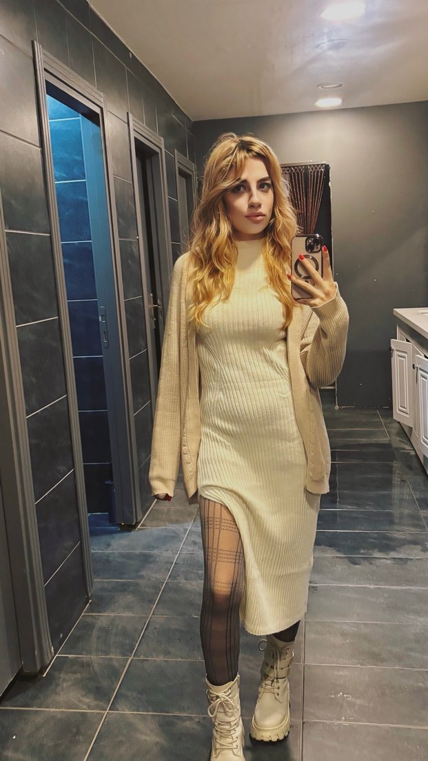 Bej renkte, yüksek yaka ve sıfır kollu triko midi elbise. İnce kesimi ve yumuşak dokusuyla günlük kullanım için rahat ve şık bir tercih. Hırkası ile birlikte vereceğim. Elbise kolsuzdur. Kış için çok şık duruyor. 2 kez giydim. Temiz duruyor. Tarzıma uymadığı için fazlalıktan satıyorum. Üzerinde bedene ait bir etiket yoktur ben S bedenim üstüme tam oluyor xs ve M bedene de uygun olucaktır. Esnektir