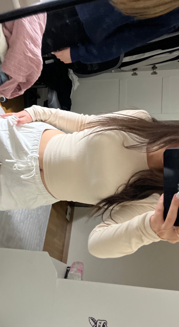 Bej renkli, yüksek yakalı ve uzun kollu, pamuklu kumaştan yapılmış fitted crop top. Normal midi boyuyla rahat ve şık bir görünüm sunar, günlük kullanıma uygundur.
