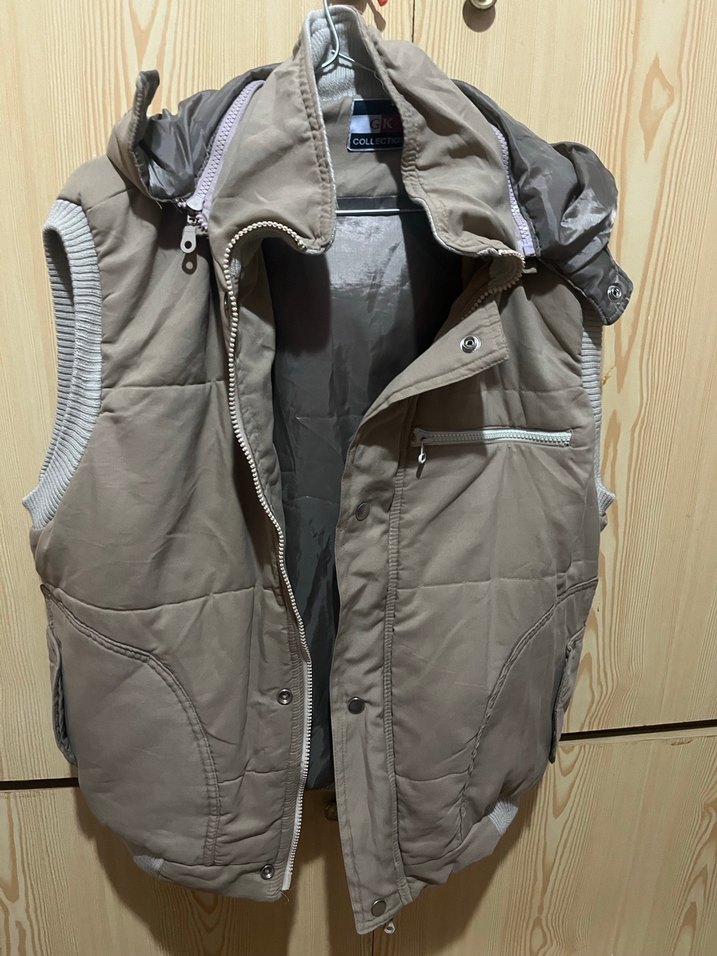 Bej renkte, yüksek yakalı ve fermuarlı kadın yelek. Sentetik kumaştan, fitted kesim ve rahat sokak stili sunar. Dış mekan kullanımı için uygundur.