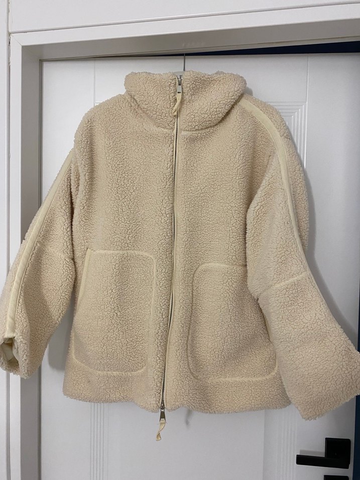 Bej renkli, yüksek yakalı ve bol kesimli kadın ceketi, yumuşak ve sıcak kumaştan üretilmiştir. Uzun kollu ve fermuarlı, günlük kullanım için uygundur. 1 defa kullanıldı.hiç bir kusuru yoktur.acil satılıktır.yardımcı olursanız sevinirim.