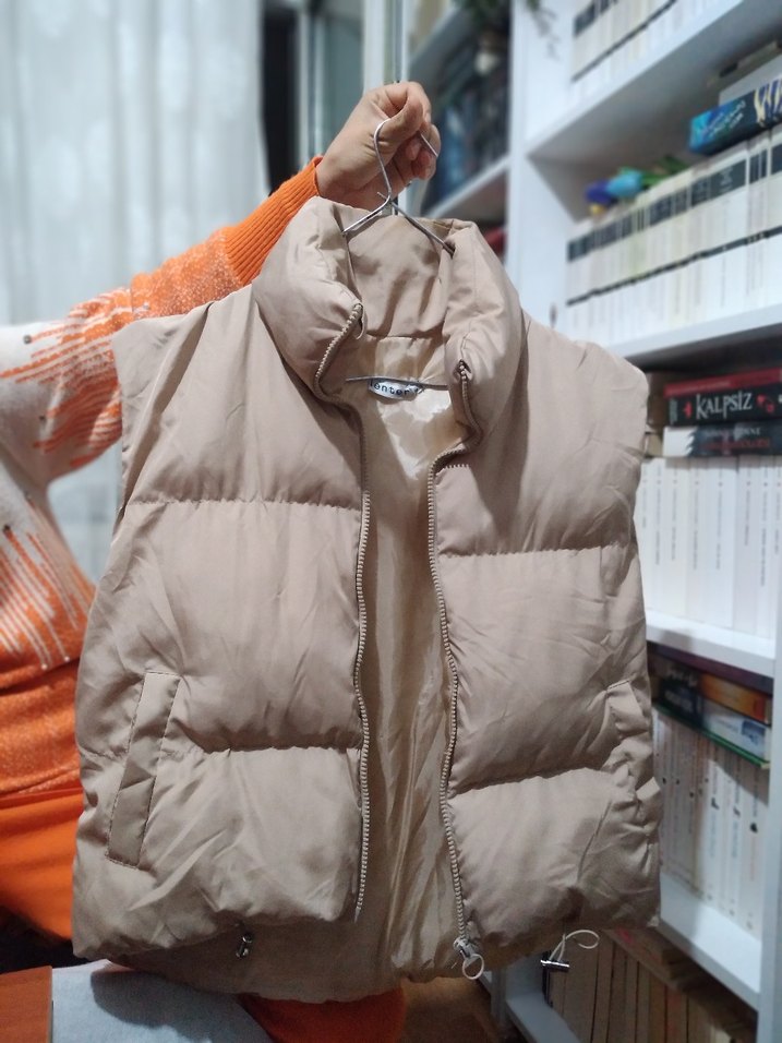 Bej Yüksek Yakalı Kadın Şişme Yelek