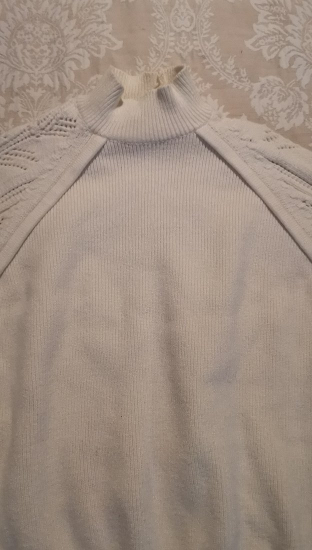 Bej renkte, yüksek yakalı ve uzun kollu kadın triko kazak. İnce örgü dokusu ve normal boyu ile günlük rahat kullanıma uygundur.