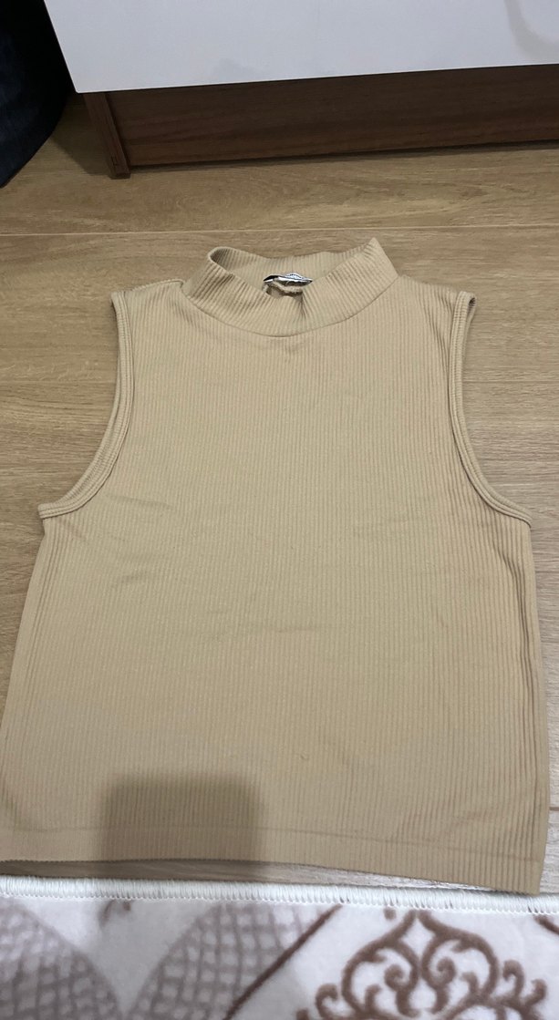 Bej renkte, kolsuz ve yüksek yakalı bu kadın atlet, yumuşak keten kumaştan üretilmiştir. Günlük kullanıma uygun, rahat ve şık bir görünüme sahiptir.
