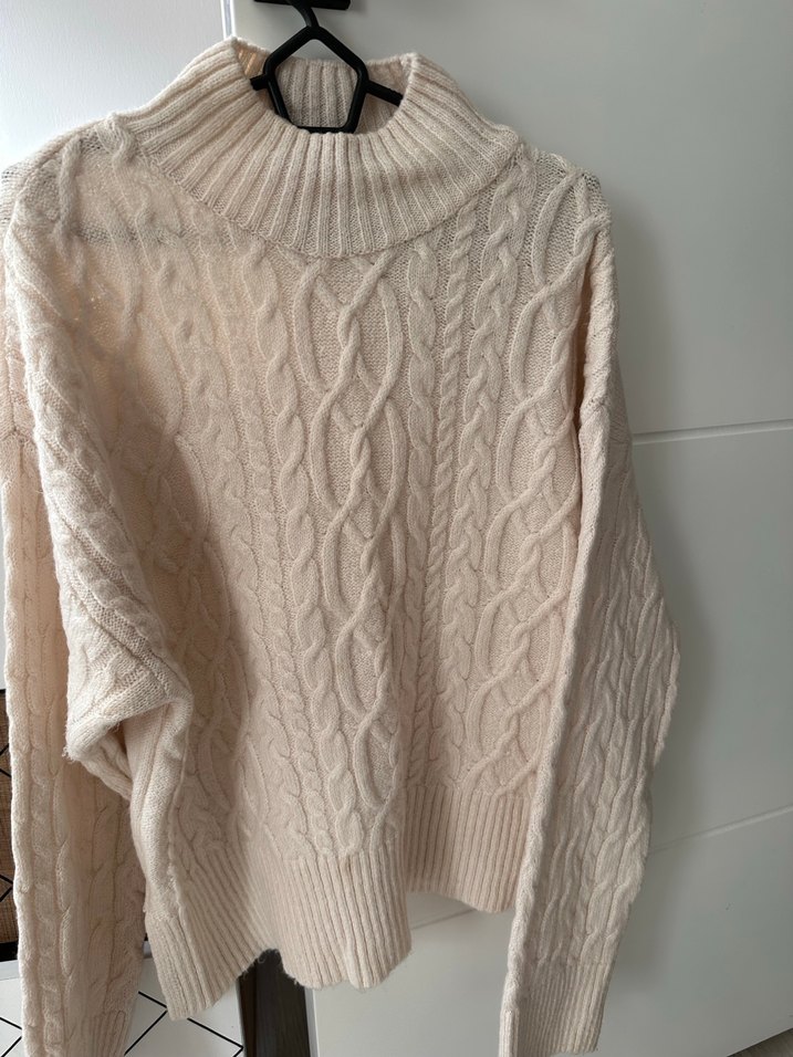 Bej renkli, yüksek yakalı ve uzun kollu örgü kadın kazak. Rahat kesimi ve pastel tonu ile günlük kullanıma uygun, konforlu bir normcore tarz sunar.