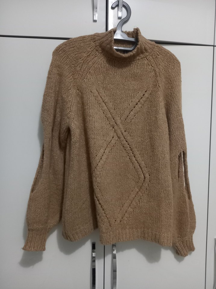 Bej renkli, yüksek yakalı ve uzun kollu örgü kadın kazak, rahat kesimiyle günlük kullanıma uygundur. m beden trendyol marka