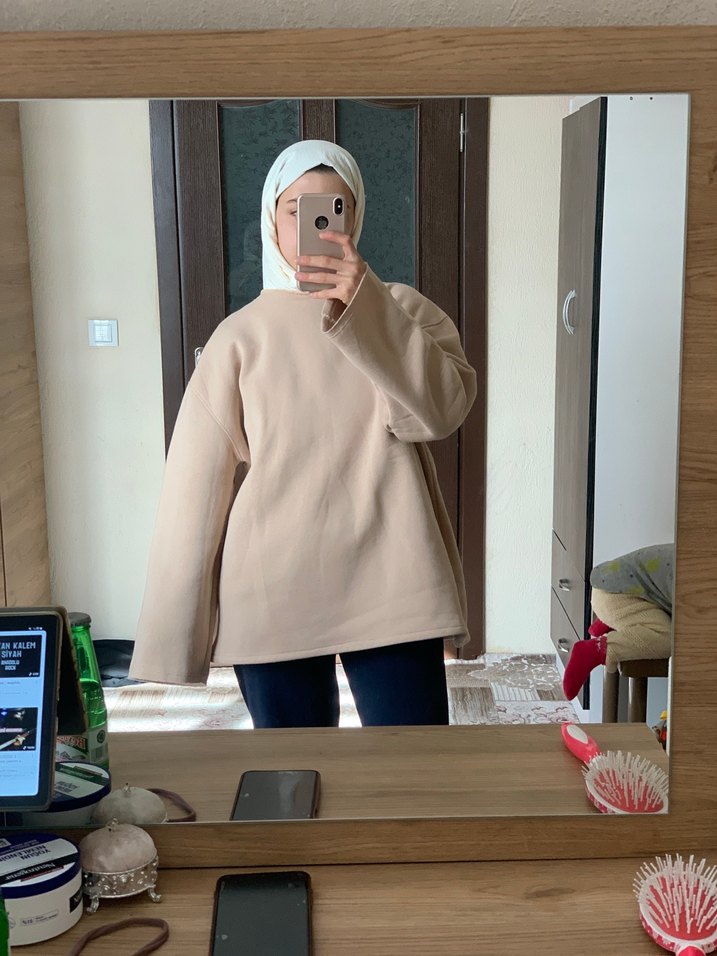 Bej renkte, yüksek yakalı ve uzun kollu bu sweatshirt bol kesim ve normal uzunluktadır. Yumuşak ve sıcak kumaştan üretilmiş, rahat ve şık bir görünüm sunar.
