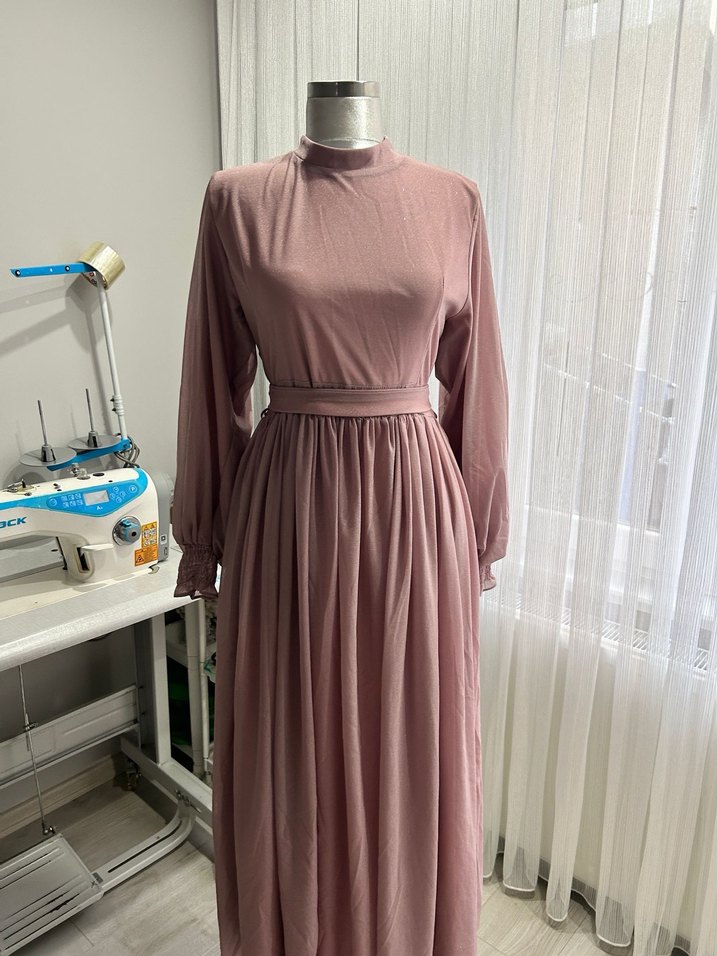Bej renkte, yüksek yakalı ve uzun kollu, salaş ve drapeli kesime sahip uzun elbise. İpeksi kumaştan, modern klasik ve minimalist tarzda. Günlük kullanıma uygun. Daha önce 2 3 kere giyildi ama herhangi bir zararı yok daha önce giydiğim için ihtiyaç fazlalığından satıyorum