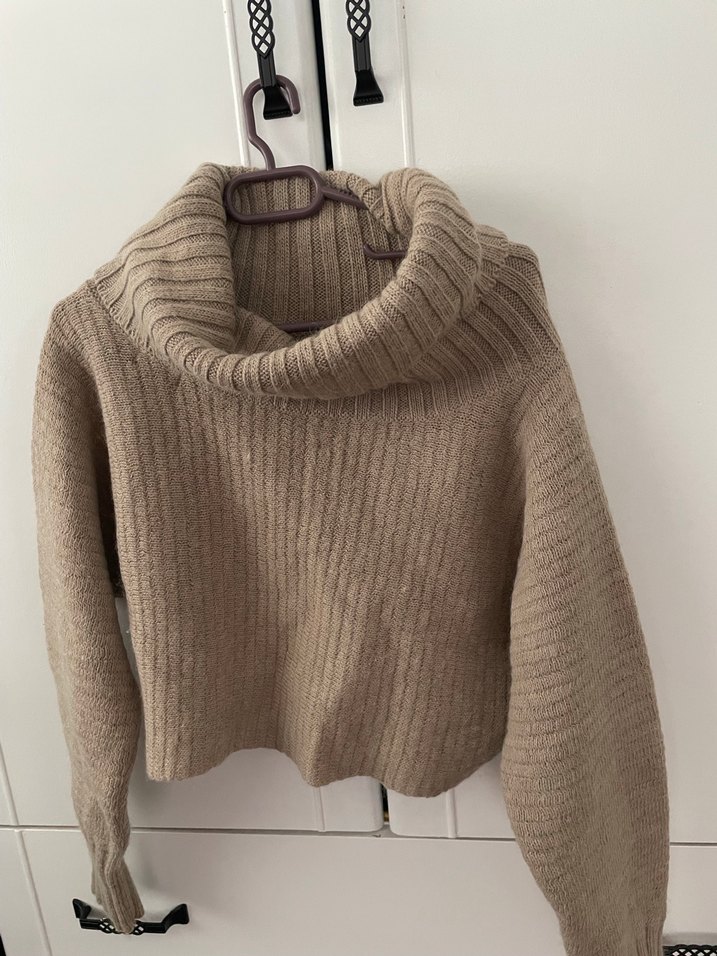 Bej renkli, boğazlı, uzun kollu ve midi boyda triko kazak. Yumuşak dokusu ve bol kesimiyle rahat ve şık bir günlük tercih.