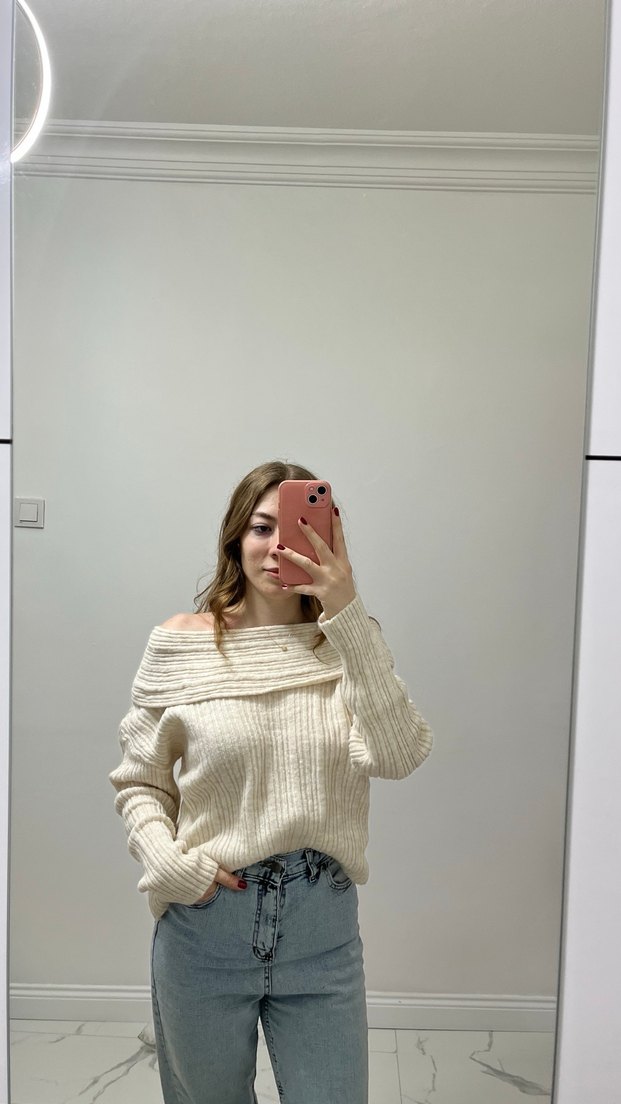 Tüm renkleri mevcuttur Standart beden Bej renkli, uzun kollu ve madonna yaka örgü kazak, rahat kesimi ve yumuşak dokusuyla günlük kullanıma uygundur. Örgü kumaştan yapılmıştır.