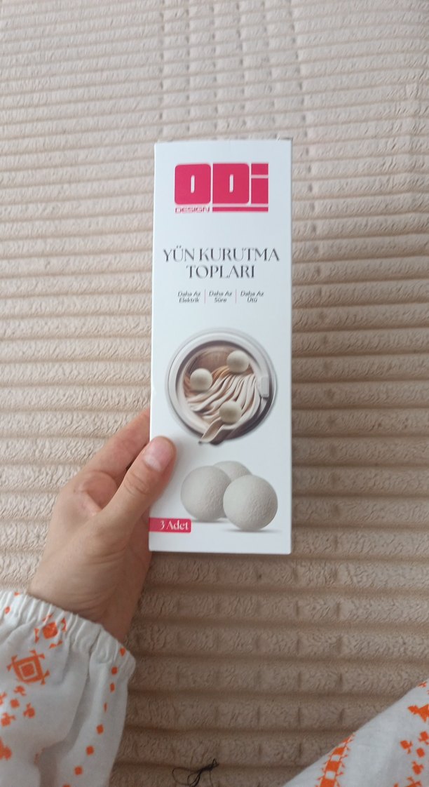 Kurutma süresini kısaltan ve kumaşları doğal olarak yumuşatan bej yün kurutma topları. 3 adet set halinde sunulur.
