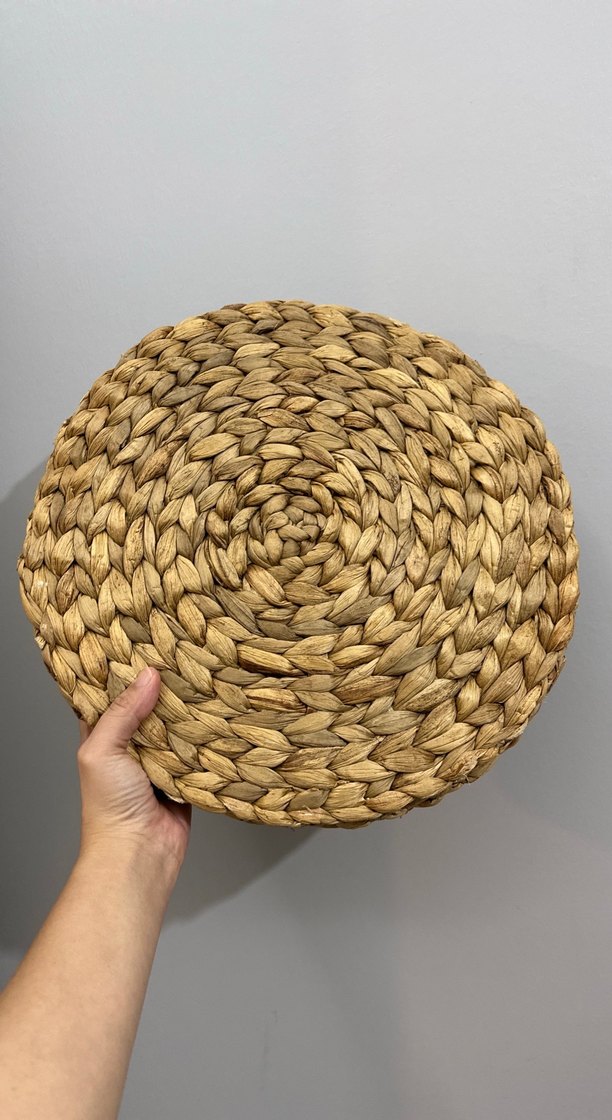 Yuvarlak, doğal liflerden örülmüş bej renkli mouse pad, dokulu bir yüzey sunar. 4 adet