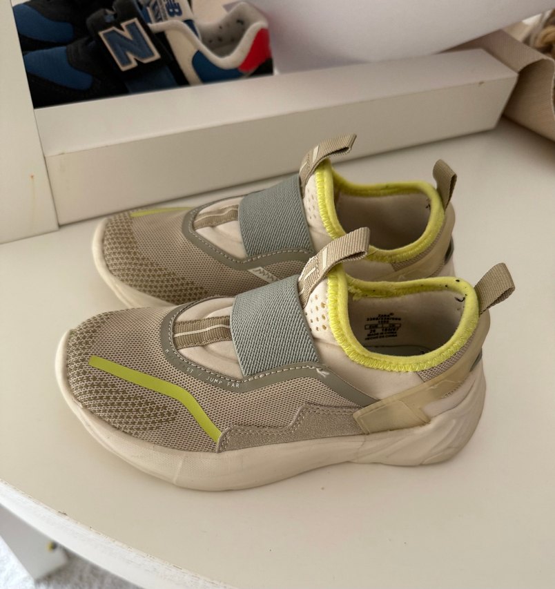 Bej renkli, Zara marka çocuk spor ayakkabısı. Kauçuk tabanlı, rahat ve sokak stili için uygun.