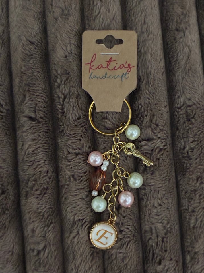 Bej renkte, zincir detaylı ve pastel boncuklu bohem tarzda anahtarlık. Süsleyici figürler ve harfli kolye içerir.