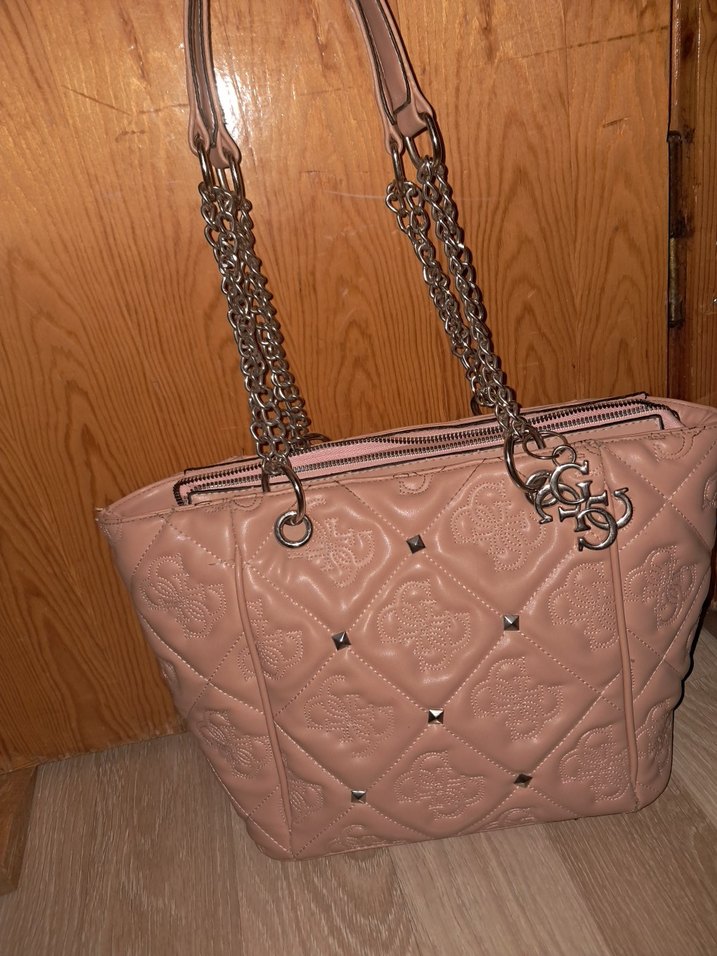 Bej renkli deri çanta, zincir detayları ve nakışlı deseniyle klasik ve bohem tarzı bir araya getirir. Günlük kullanıma uygundur.