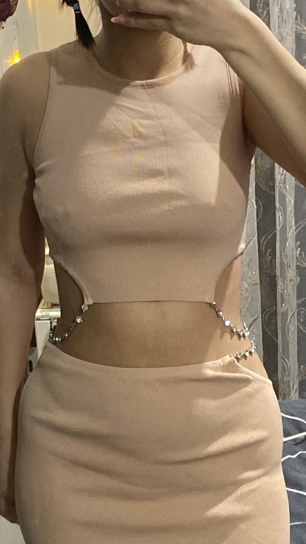 Bej renkli, zincir detaylı kadın body chain. Minimalist sokak stili için tasarlanmıştır. Parti ve şık etkinlikler için uygundur. ✨