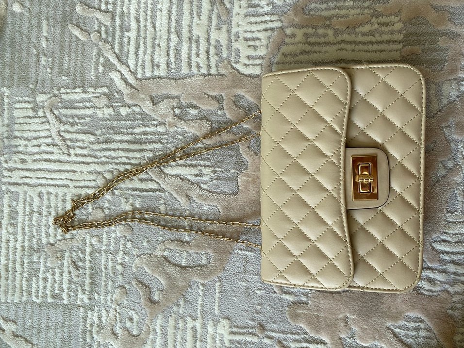 Bej Zincir Detaylı Kadın Çanta